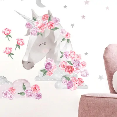 Krásná samolepka na zeď s jednorožcem jako z pohádky bude vysněnou ozdobou pokojíčku každé holčičky!