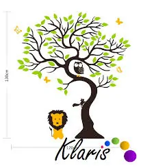 Samolepky na zeď - Strom, sova a lev 130x120 cm