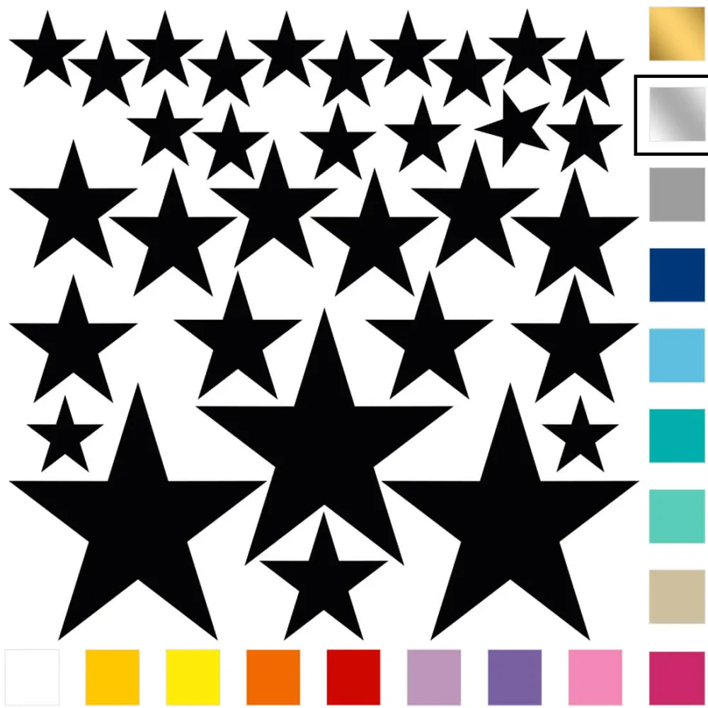 Sada 32 ks kvalitních samolepek na zeď ve tvaru hvězd o rozměrech: